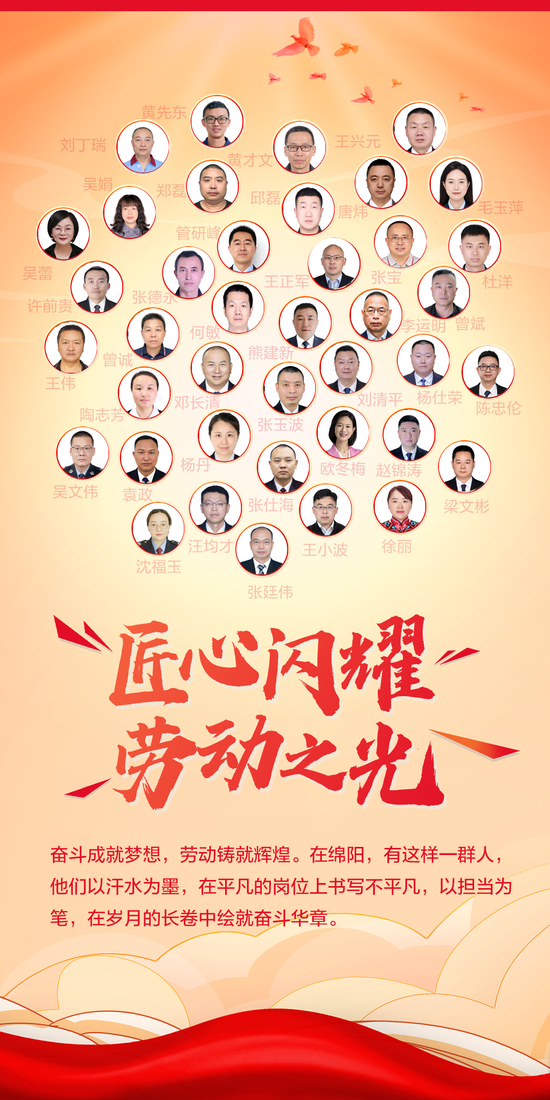 在平凡的崗位上,他們奮斗的身影綻放出最美芳華。綿陽受到表彰的40名四川省第九屆勞動模范和先進工作者都非常激動:“獲得這個榮譽是一種鼓勵和鞭策,希望在以后的工作中,始終用‘勞?!臉藴蕠栏褚笞约海煌跣?,再接再厲!”