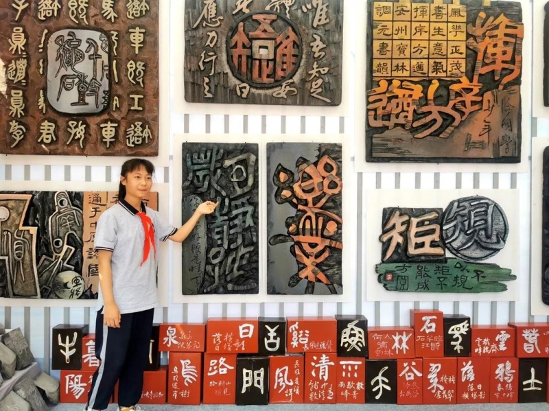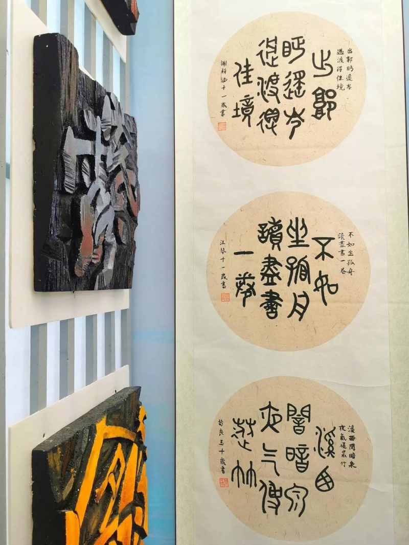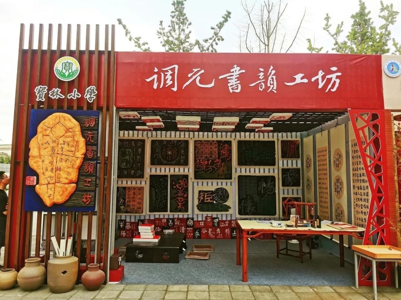 一張古樸書桌、一套筆墨紙硯,滿墻書法字畫,走進(jìn)調(diào)元書韻工坊,感受濃濃的文化氣息。7月5日,安州區(qū)塔水鎮(zhèn)寶林小學(xué) “調(diào)元書韻工坊”在全市第十屆中小學(xué)生藝術(shù)節(jié)精彩亮相。此次書坊展覽從調(diào)元詩(shī)歌書法作品、調(diào)元詩(shī)句紙盒塑字、《弄譜百詠》硬筆書法、《三字經(jīng)》木板雕刻、文化主題現(xiàn)代刻字、《千字文》磚瓦刻字六個(gè)方面進(jìn)行了展示。