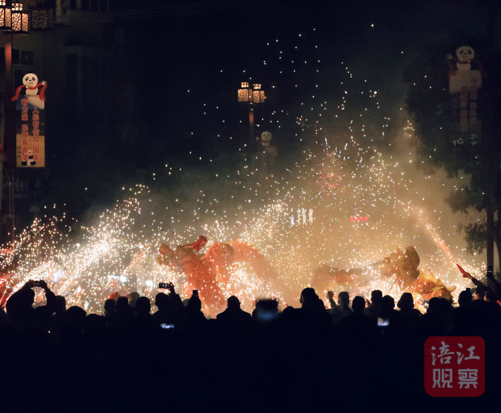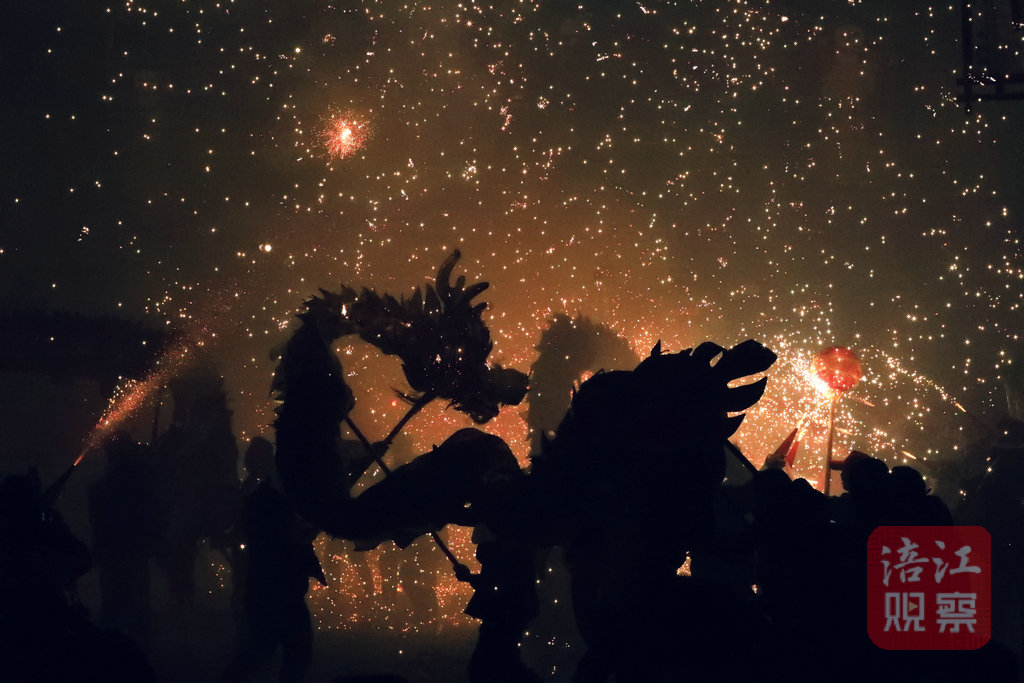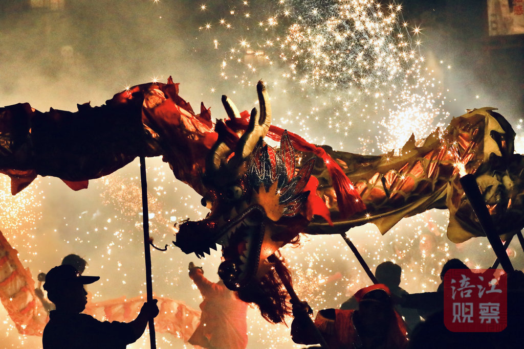 當(dāng)夜晚來臨,龍燈燃起,紅燭高照,在華光爍爍中,人們縱情歌舞,享受“一夜魚龍舞”的璀璨和浪漫,并祈愿風(fēng)調(diào)雨順,歲歲平安。
