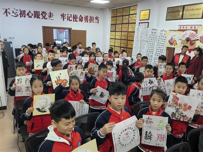 活動當天,秋雨淅瀝卻擋不住師生們的熱情。身著統(tǒng)一服裝的孩子們手擎鮮艷校旗,邁著整齊的步伐走進社區(qū)活動現(xiàn)場。墨梓園書畫協(xié)會負責人生動講述了協(xié)會長者們深耕書畫藝術(shù)、熱心公益事業(yè)的故事——即便歲月染白雙鬢,他們?nèi)砸怨P墨為媒,用書畫作品傳遞中華優(yōu)秀傳統(tǒng)文化魅力,用公益行動詮釋老有所為的擔當,深深打動了在場每一位師生。